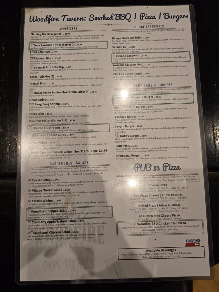 Woodfire Tavern in Long Grove, IL offers a diverse menu featuring wraps, barbeque, and American cuisine. The restaurant provides a range of amenities such as reservations, delivery, takeout, vegan and vegetarian options, wheelchair accessibility, and more. Their appetizers include unique dishes like the Flaming Greek Saganaki and Tuna Avocado Tower. For salads, guests can enjoy classics like the Caesar Salad or the Village Greek Salad. House essentials feature mouth-watering options like the Ribeye Steak Sandwich and Salmon BLT. The cozy atmosphere, friendly service, and delicious food make Woodfire Tavern a must-visit in the area. Don't miss out on their Happy Hour specials and full bar offerings. Plan your visit today and indulge in a delightful culinary experience at Woodfire Tavern.
